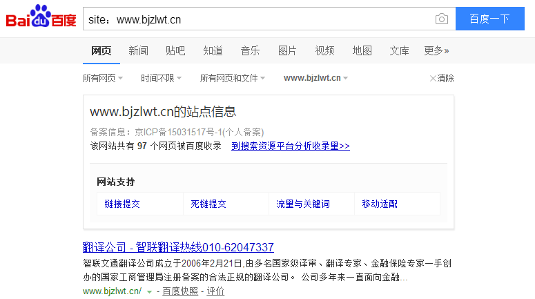网站的原TDK里面标题不包含要做的北京翻译公司也无法匹配出来地区的词,所以要进行修改。