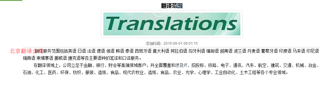内页翻译范围开头的翻译文字改为北京翻译公司服务范围包括.............